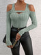Women’s Ribbed Long Sleeve Top with Cut-Out Front – Fitted Sexy Tee